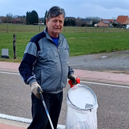 Roelant startte al 20 jaar geleden met zijn eerste opruimacties. Meer dan 1 keer per maand gaat hij in de ruime omgeving rond zijn woonplaats zwerfvuil rapen. Zijn grote hart voor natuur en milieu is zijn belangrijkste motivator: “Ik ben heel milieubewust, en ik vind het heel vervelend dat er veel afval ligt.” En hij koppelt zo ook het nuttige aan het aangename. “Ik ben graag buiten. Ik ben plantkundige van opleiding en dan zie ik onderweg wat er groeit en bloeit. Ik ben daarom ook vrijwilliger bij Natuurpunt”. Meestal gaat Roelant alleen op pad, soms samen met andere vrijwilligers. “In Tremelo hebben alle vrijwilligers een aantal vaste straten die ze proper houden. Maar als er veel ligt, helpt ik ook andere vrijwilligers bij hun route”. In het voorjaar organiseert hij voor de gemeente Tremelo ook de jaarlijkse zwerfvuilactie. Hij stippelt dan een drietal wandelingen uit voor de deelnemers. Een actie die altijd op veel geïnteresseerden kan rekenen. “Er is een heel goede samenwerking tussen de vrijwilligers en de gemeente”.